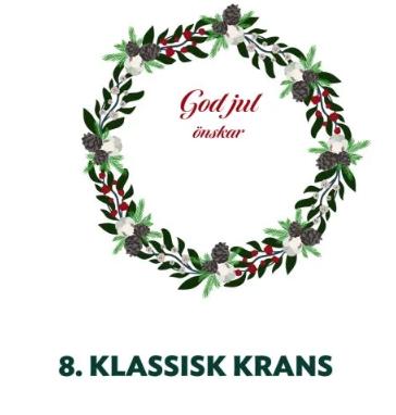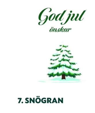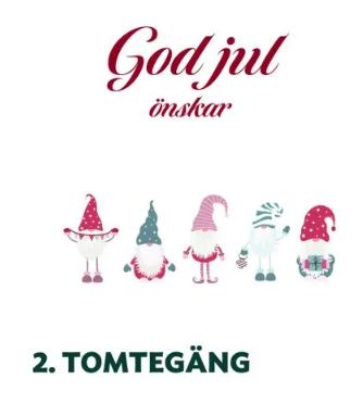 • Färger: 1 tomte med paket, 2 tomtegäng, 3 tomtelyktor, 7 snögran, 8 klassisk krans