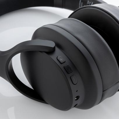 Ett par bekväma over-ear hörlurar med hög ljudkvalitet, utvecklade för långvarig användning och tillverkade av certifierat återvunnet material. Perfekta som modern företagsjulklapp när ni vill ge något användbart, hållbart och uppskattat.