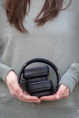 De mjuka öronkuddarna och den vridbara designen ger en skön passform även under längre lyssningssessioner. Ljudet är klart och balanserat, oavsett om mottagaren lyssnar på musik, poddar eller deltar i videosamtal.
