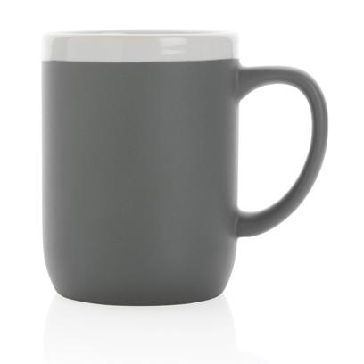 Denna keramikmugg med vit kant på 300 ml kombinerar en ren och minimalistisk form med en stilfull kontrastdetalj. Den vita kanten upptill ger muggen ett extra lyft och skapar en fräsch, modern känsla som passar lika bra på kontoret som i hemmamiljö. Insidan är glansig medan utsidan har en matt finish, vilket ger en exklusiv och samtida karaktär.