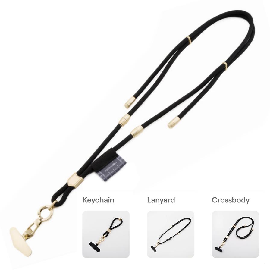 Detta nyckelband är framtaget för att fungera i flera olika sammanhang och erbjuder en flexibel 3i1-lösning som gör att det kan användas på olika sätt beroende på behov. Det kan bäras som ett klassiskt nyckelband runt halsen, användas som crossbody-lösning eller anpassas för mer kompakt användning. Den justerbara konstruktionen gör att passformen enkelt kan finjusteras, vilket bidrar till hög komfort och gör produkten användbar under hela dagen. För företag som vill investera i nyckelband med högre upplevd kvalitet är detta ett starkt alternativ, särskilt när målet är att kombinera funktion med ett mer premiumbetonat uttryck. Eftersom profileringen sker på etiketten eller den hängande badgen får varumärket en tydlig men mer förädlad exponering än på traditionella nyckelband med tryck.