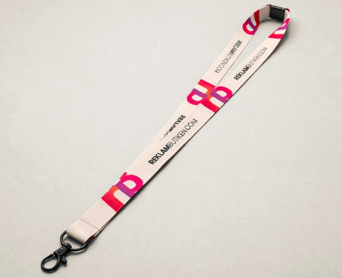 Nyckelbandet trycks med en tryckteknik som heter sublimation, som möjliggör avancerade fullfärgs designer på fram- och baksida.