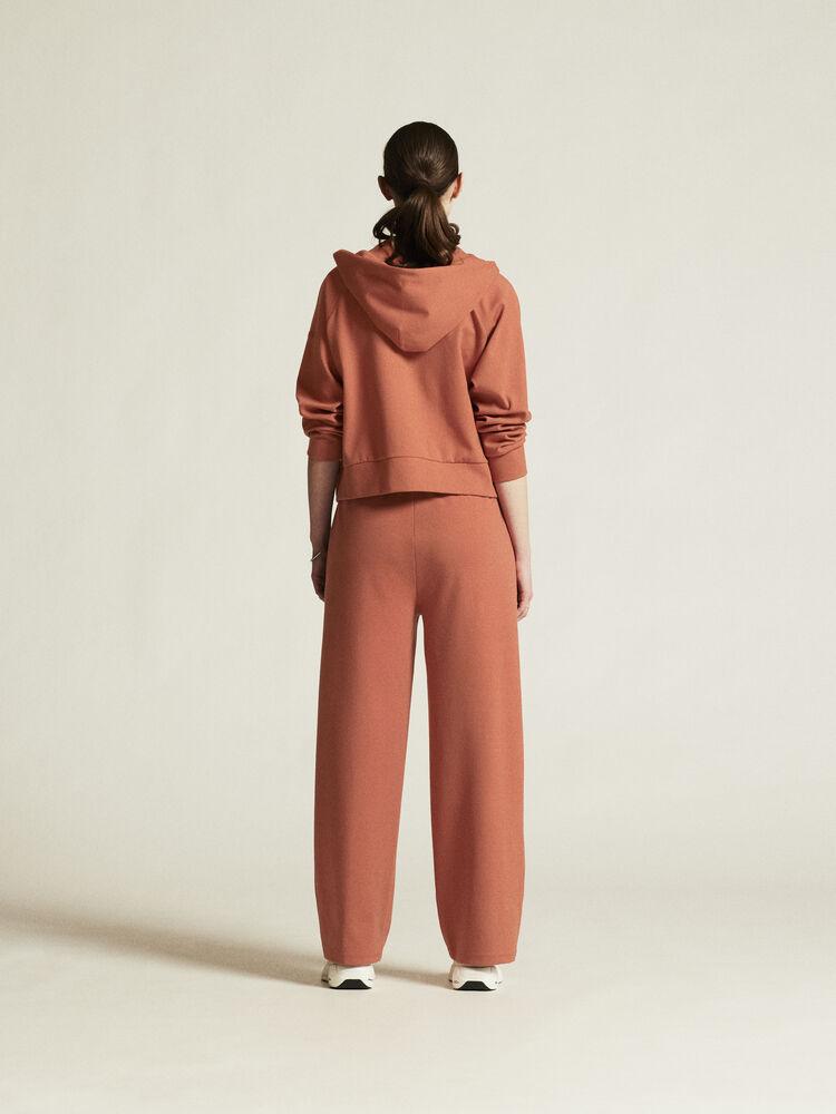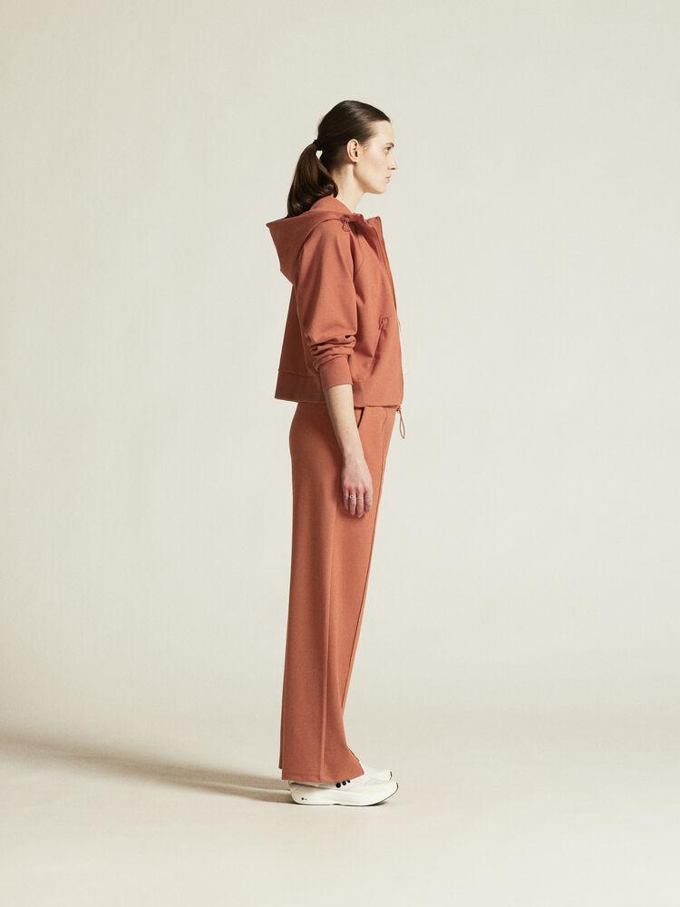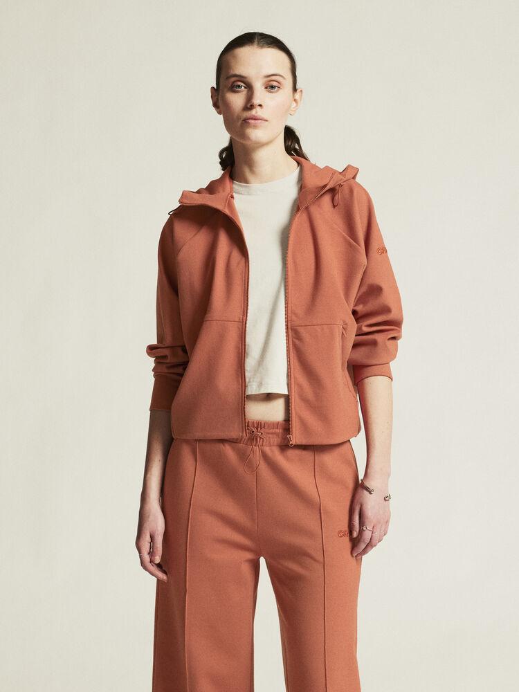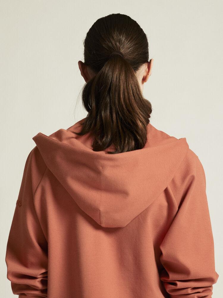 Hoodien har raglanärmar för naturlig rörelsefrihet, justerbar huva för personlig passform och hel dragkedja framtill. Kängurufickan med dolda dragkedjor bidrar till ett rent och modernt uttryck samtidigt som den erbjuder praktisk förvaring.
