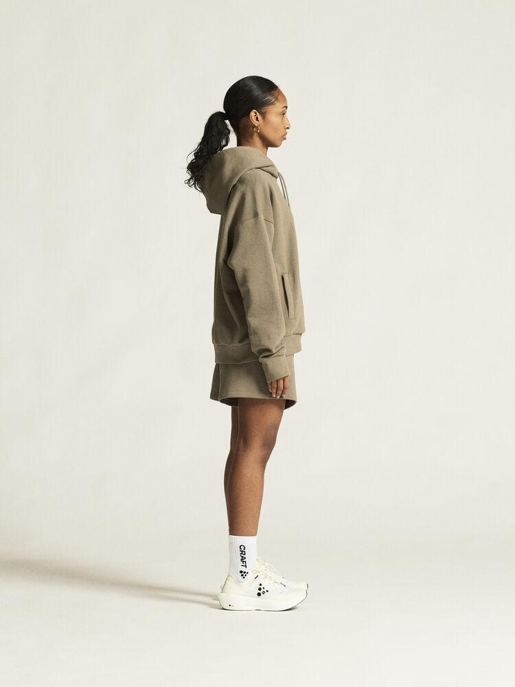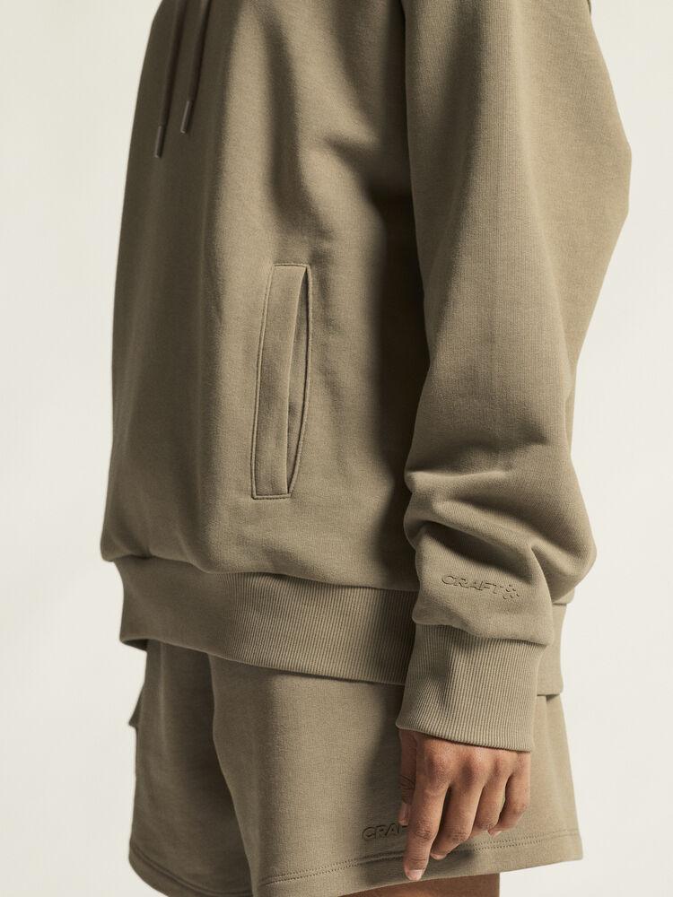 Denna hoodtröja med egen logga är tillverkad av 100 procent ekologisk bomull i ett kraftigt och mjukt tyg med loopback-struktur på insidan. Materialet ger en behaglig känsla mot huden samtidigt som det håller formen väl även vid frekvent användning. Ribbstickade muddar vid ärmslut och nederkant bidrar till en snygg passform och ökad slitstyrka.