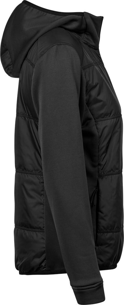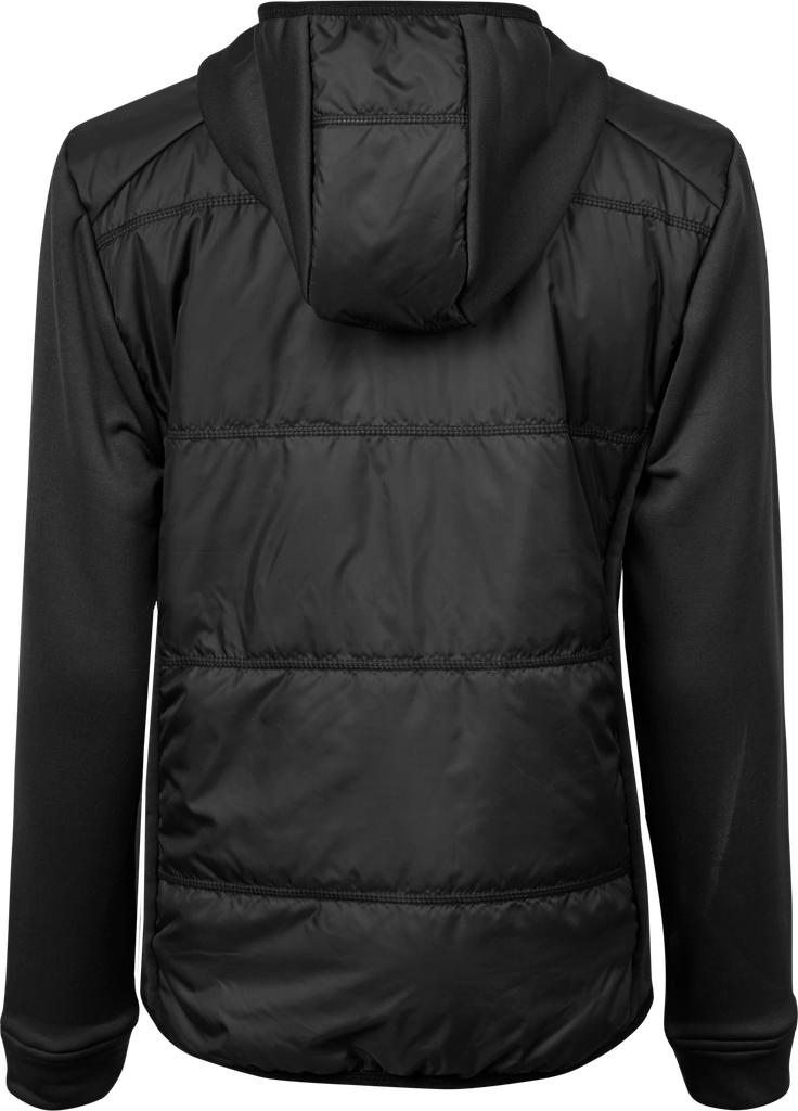 TeeJays Hybrid-Stretch Hooded Jacket för dam är en modern jacka med tryck som kombinerar värme, stretch och en feminin silhuett. En stilren profiljacka för företag som vill erbjuda funktionella och snygga företagskläder för arbete, event och vardag.