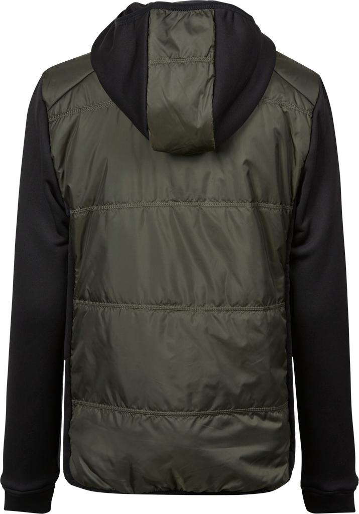 Denna hybridjacka är tillverkad i återvunnet polyestertyg med elastiska fleecepaneler i ärmarna för ökad komfort och rörelsefrihet. Den isolerande vadderingen i DuPont™ Sorona® Aura ger behaglig värme samtidigt som jackan behåller en lätt och följsam känsla. Den fasta huvan gör jackan extra användbar under svalare och blåsiga dagar.
