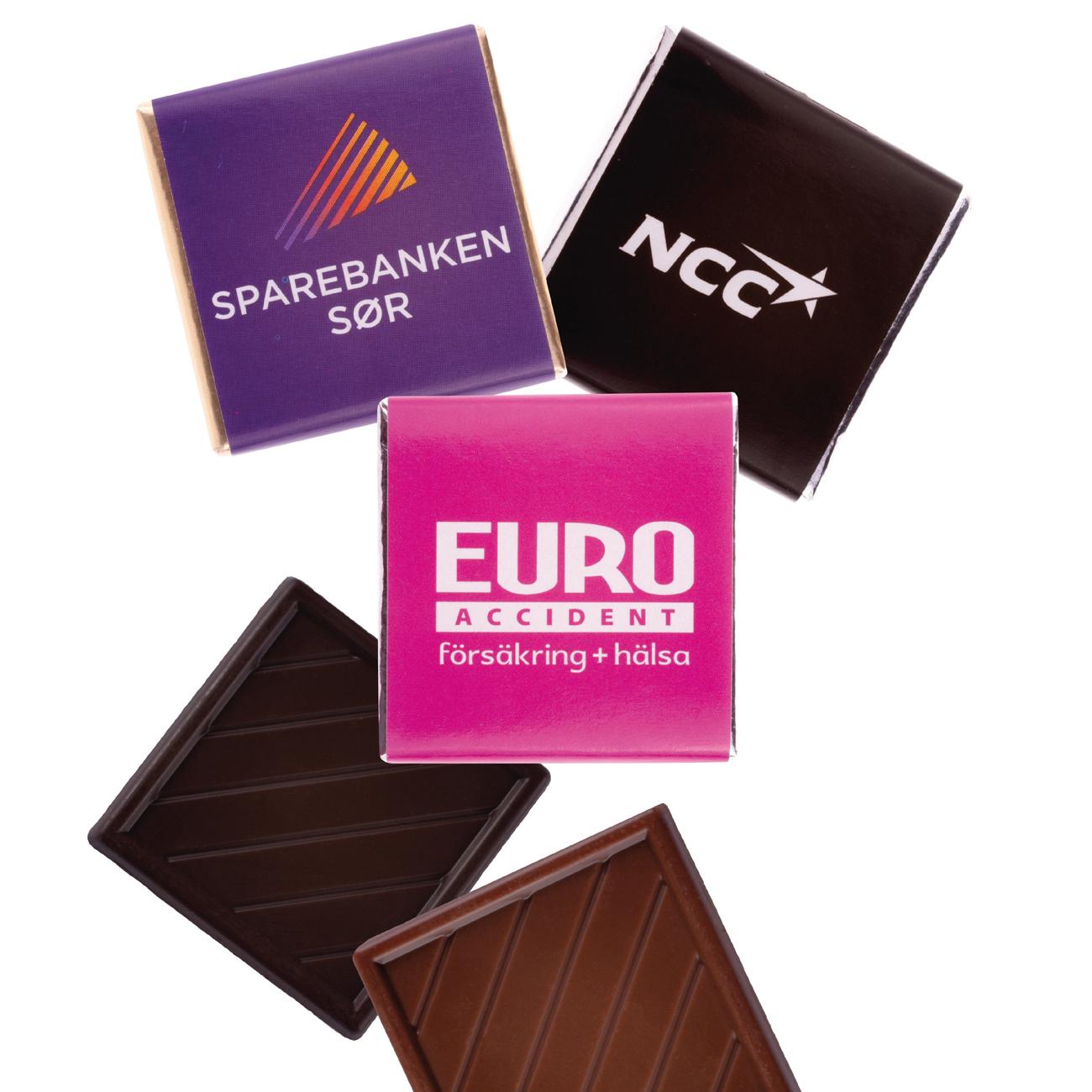 Profilprodukter och Reklamartiklar Reklamgodis Choklad med eget tryck Reklamgodis - Chokladkvadrat Populär 5 g Spara