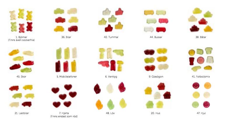 Välj mellan över ett dussin godisformer som bilar, hjärtan, glasögon, bussar, telefoner och fotbollstema. Oavsett om du vill sprida glädje med färgglada björnar eller skicka en budskapspåse formad som verktyg eller hus, så har vi något som matchar din målgrupp och kampanj. Påsarna innehåller cirka 7 gram godis och finns i både klassiska plastvarianter och komposterbara alternativ med miljövänlig profil.