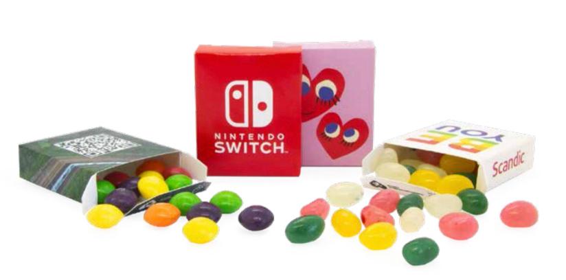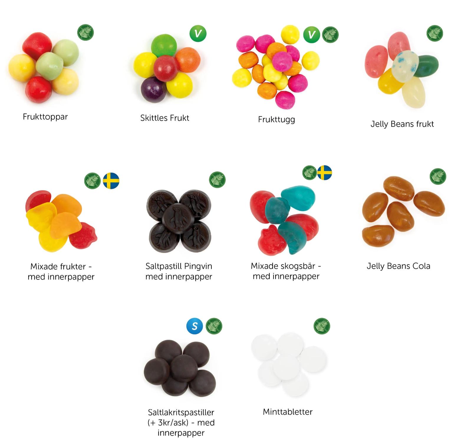 Denna tablettask rymmer cirka 21 gram godis och du väljer mellan