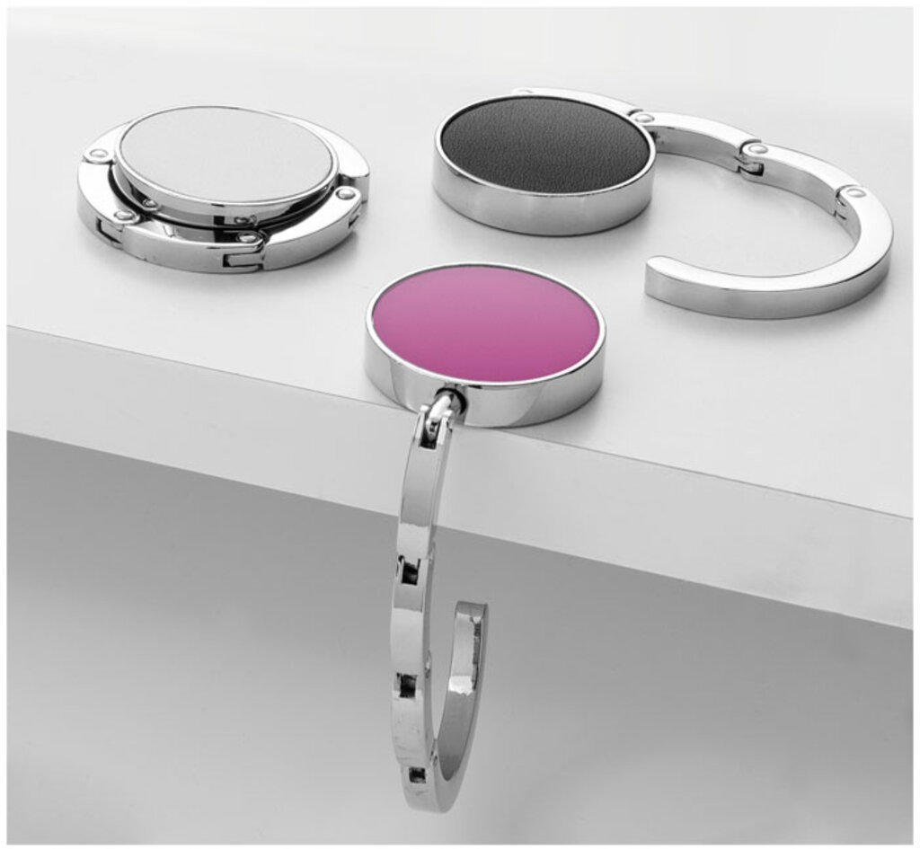 Vikbar väskhängare som håller väskan ren och säker. Hängaren kan fästas på kanten av en yta och bära upp till 4,5 kg. Inkl. Levereras i en fin sa presentförpackning.