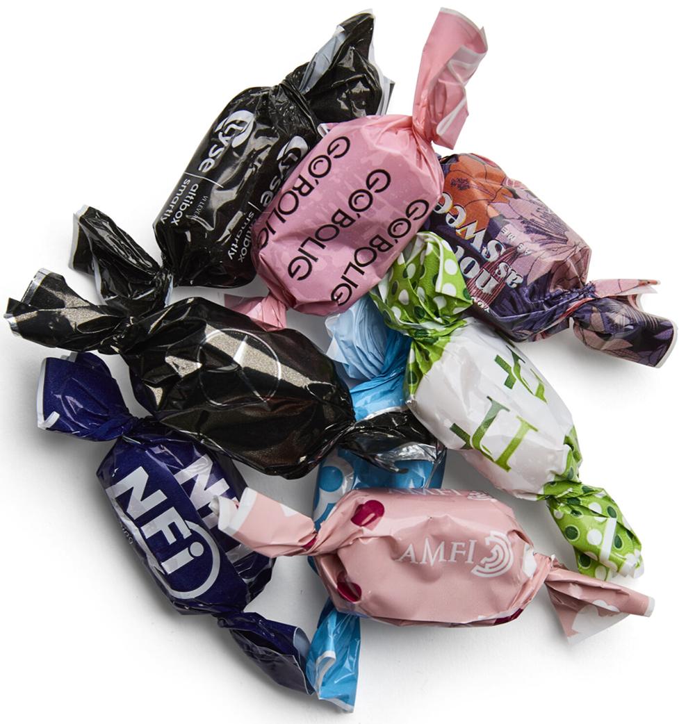Beställ ditt reklamgodis i önskad smak och design, och gör ett bestående intryck hos både kunder och besökare. Med vår mässgodis får du inte bara ett uppskattat smakprov – du får också en tydlig och stilren profilbärare som passar i alla professionella sammanhang.